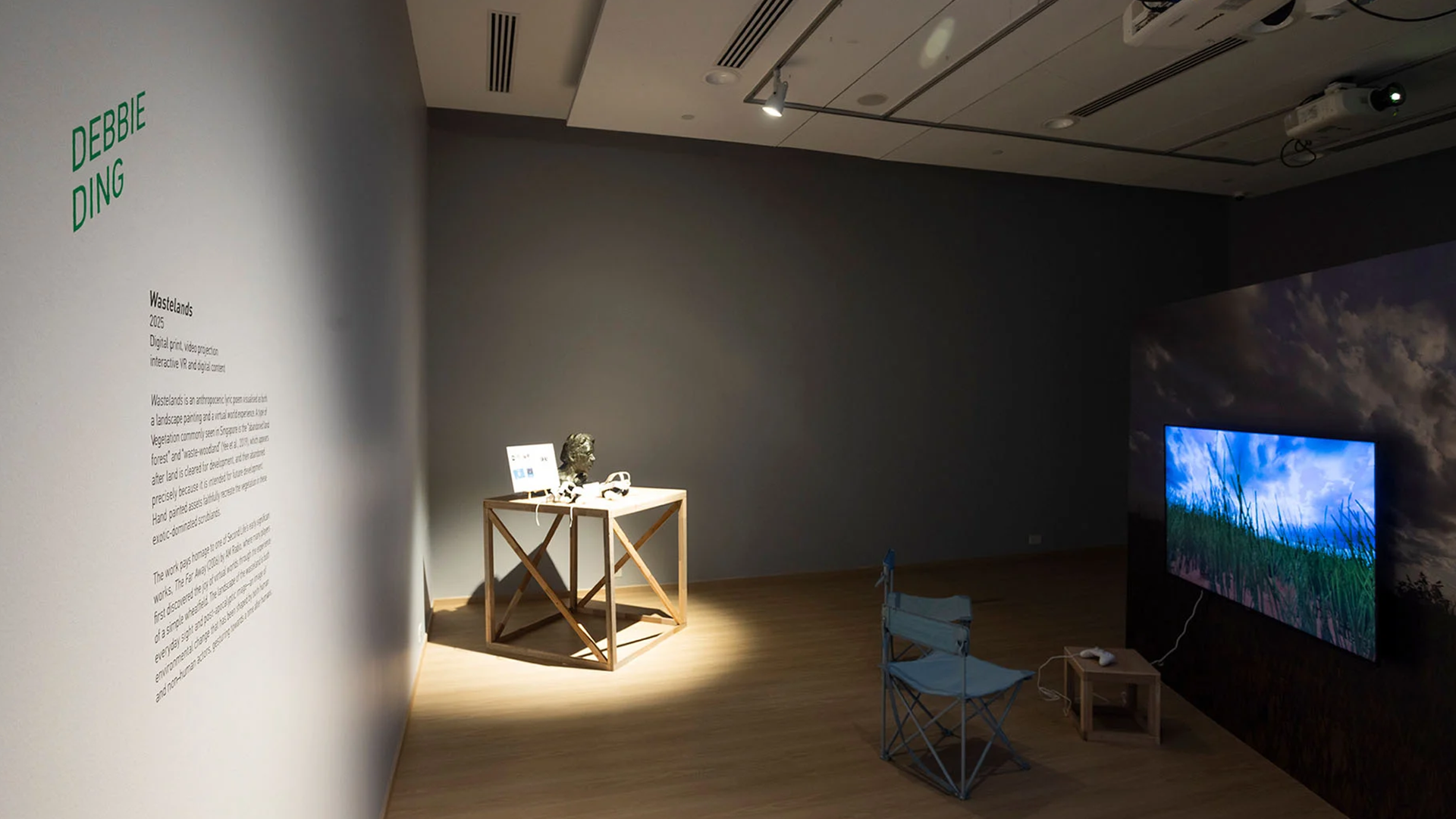 “Wastelands” is an anthropocenic lyric poem visualised as landscape painting and virtual world experience. A minimalist virtual world, landscape artwork. It explores the ecological intricacies of urban cities alongside a critique of contemporary conventions of games. The work was originally commissioned for Nanyang Technological University Museum (NTU Museum)'s Construction in Every Corner exhibition, which opened on 13 January 2025, and the work is intended to be played live from VRChat, a free-to-play massively multiplayer online virtual reality platform. With a design emphasis on cross-platform accessibility, the work is accessible on devices ranging from PC to high-end VR systems to standalone headsets.
